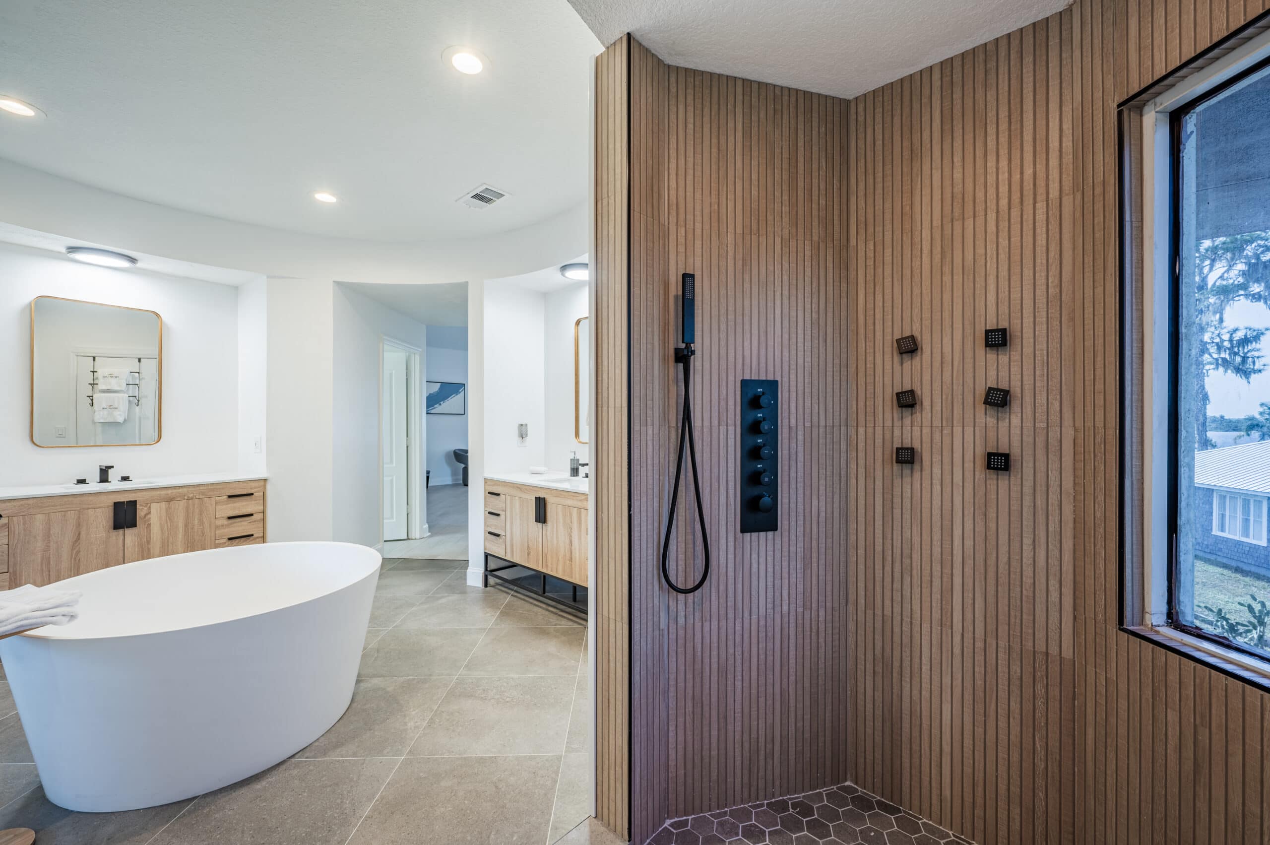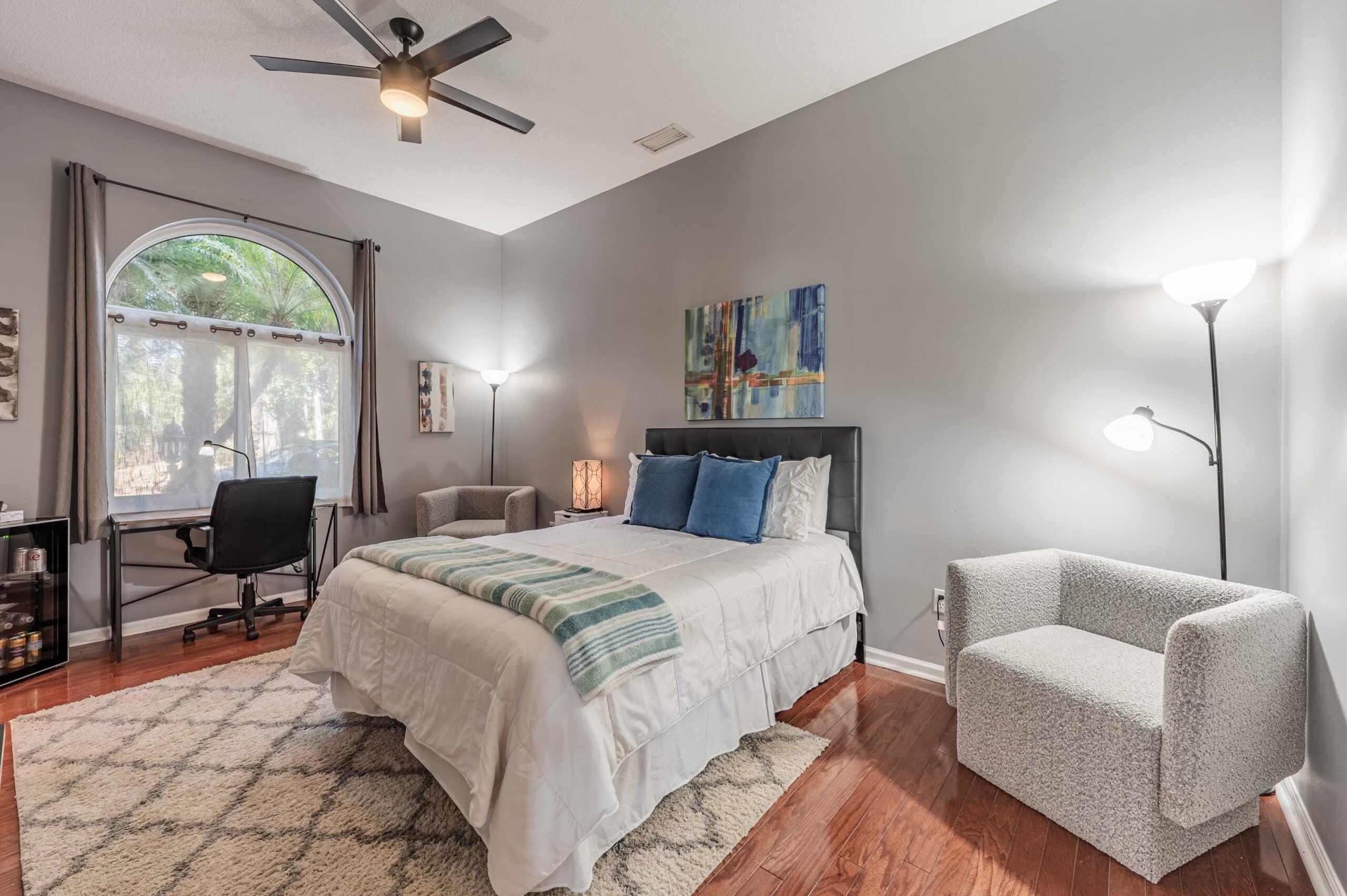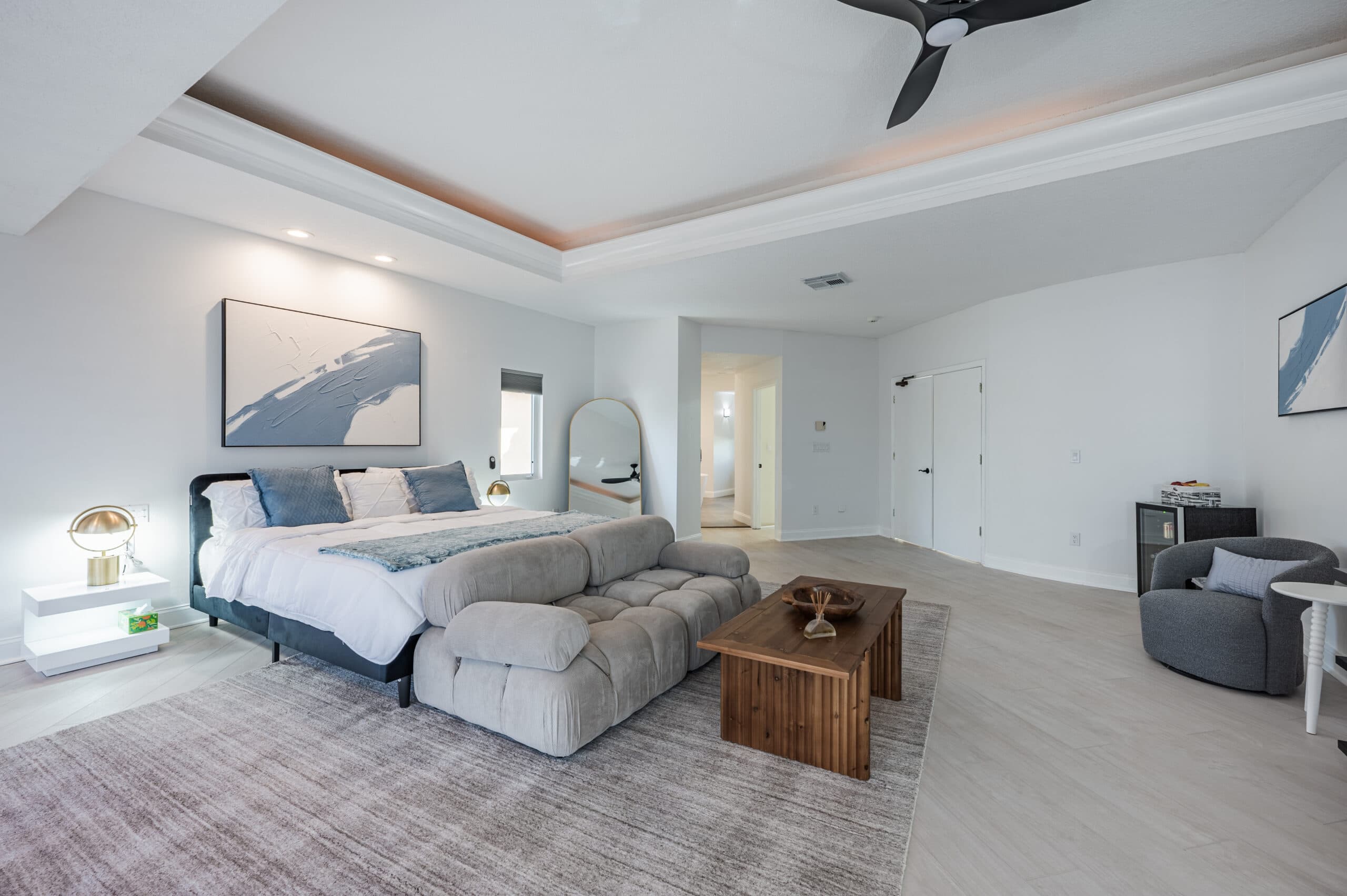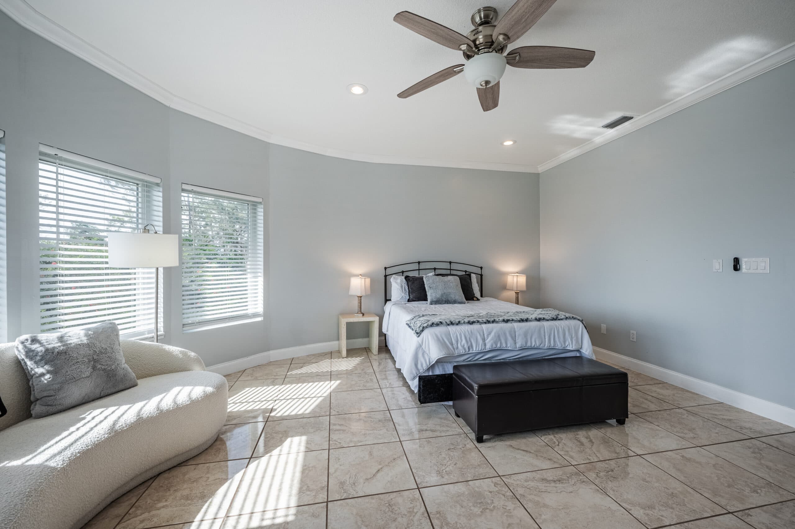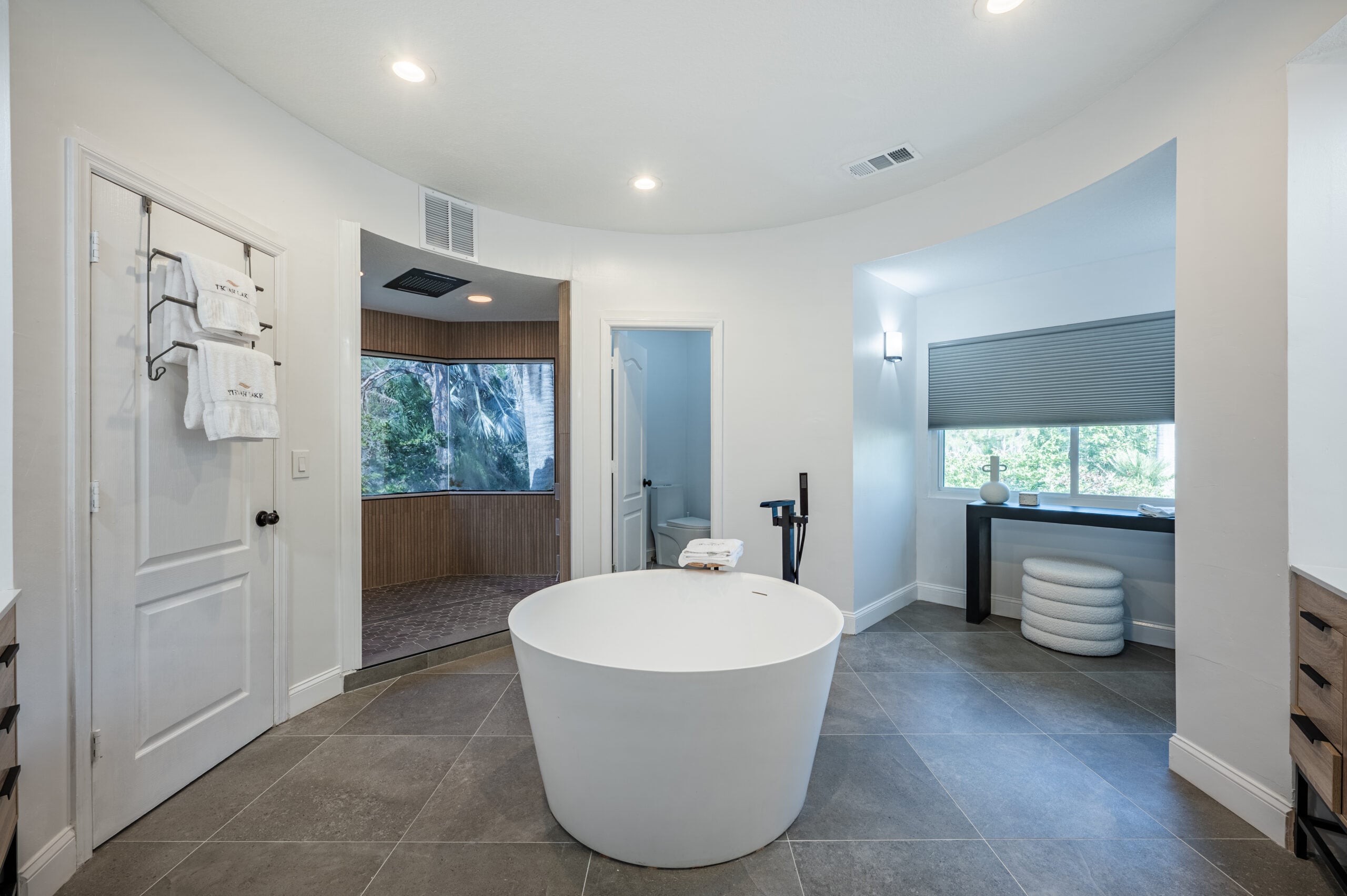 Located upstairs in the main building, the master bedroom spans approximately 1,200 square feet, providing a private and serene space for rest and reflection. With a beautifully appointed ensuite bathroom and calming, comfortable décor, it offers a peaceful retreat where guests can focus on their recovery in a supportive, healing environment.